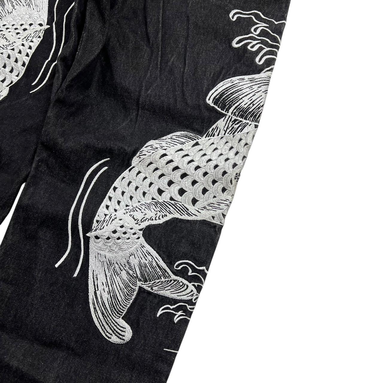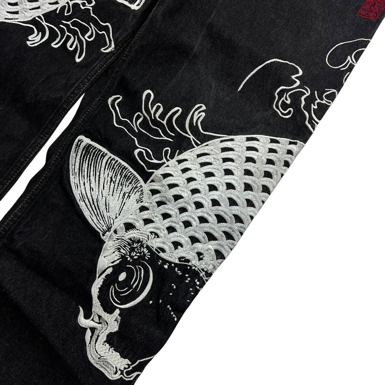 Vintage Karakuri Tamashii Embroidered Koi Fish Japanese Denim Jeans
