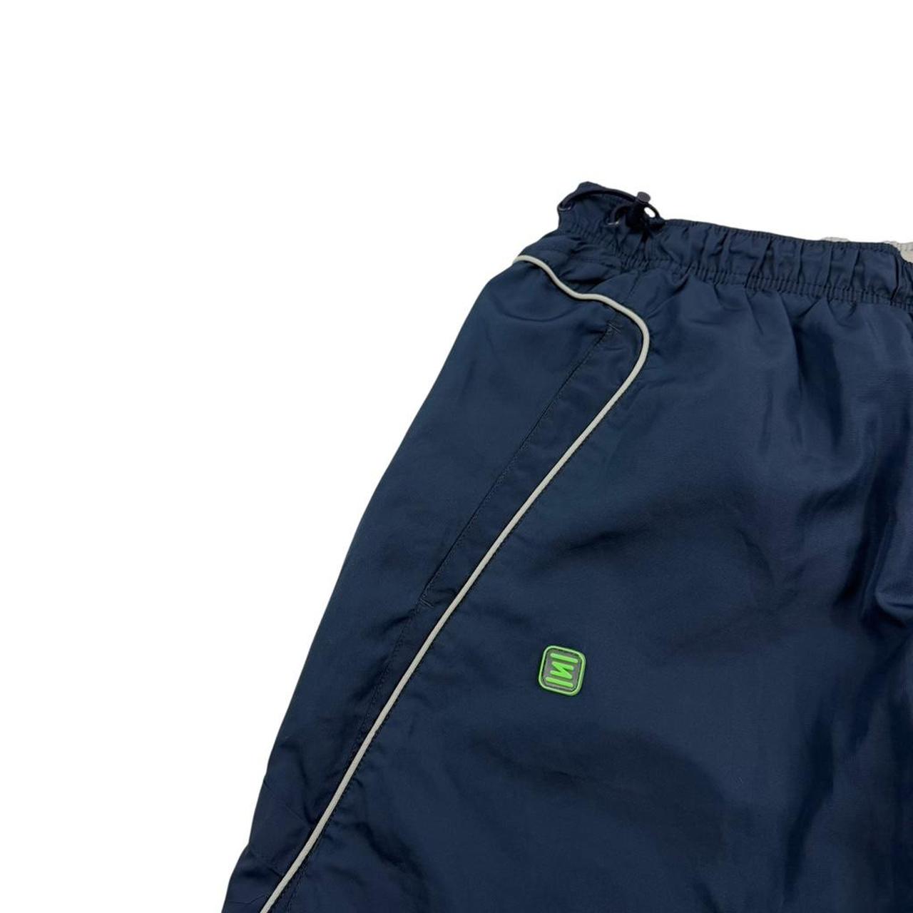 - 2000s navy blue Nike Shox shorts with embroidered swoosh and Shox logo