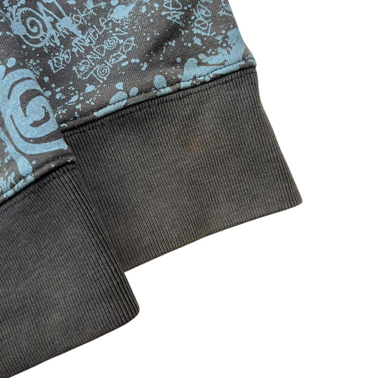 - 2000s grey and blue Stüssy hoodie with all over graffiti print