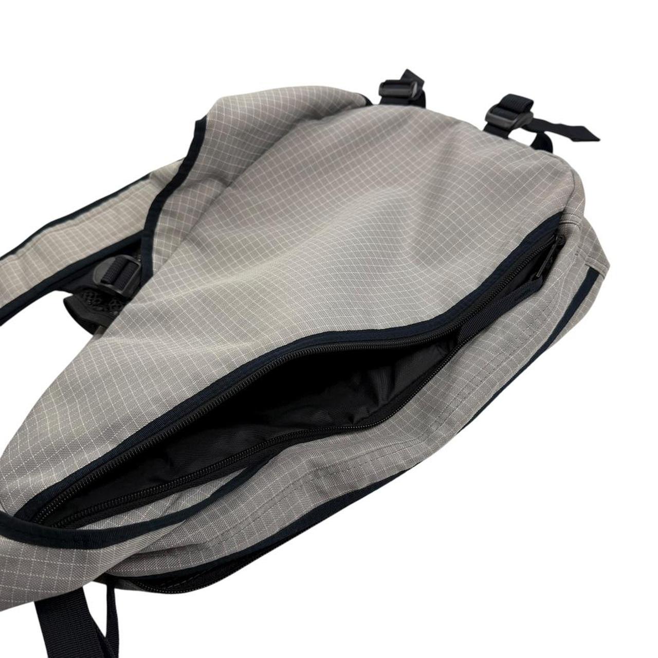 - Early 2000s grey Stussy sling bag with grid pattern